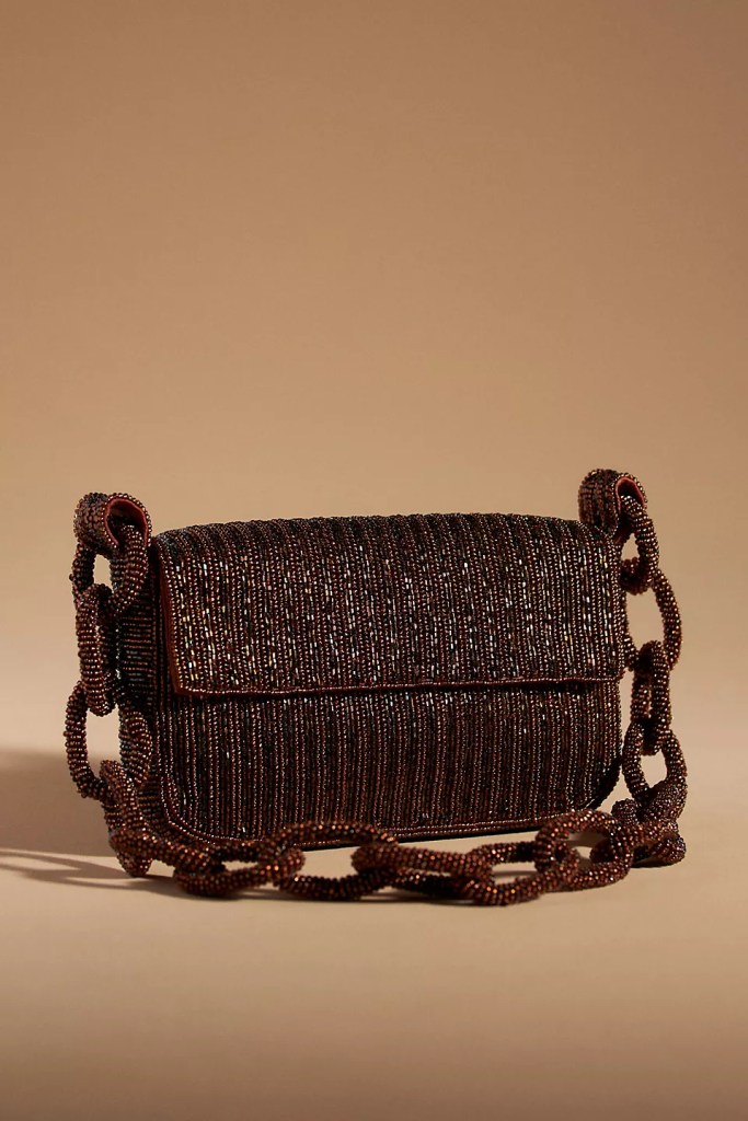 If you’re going to wear basic pieces choose textured and patterned items to dress up your look. This beaded bag is super fun and will make every outfit a bit more sassy!
