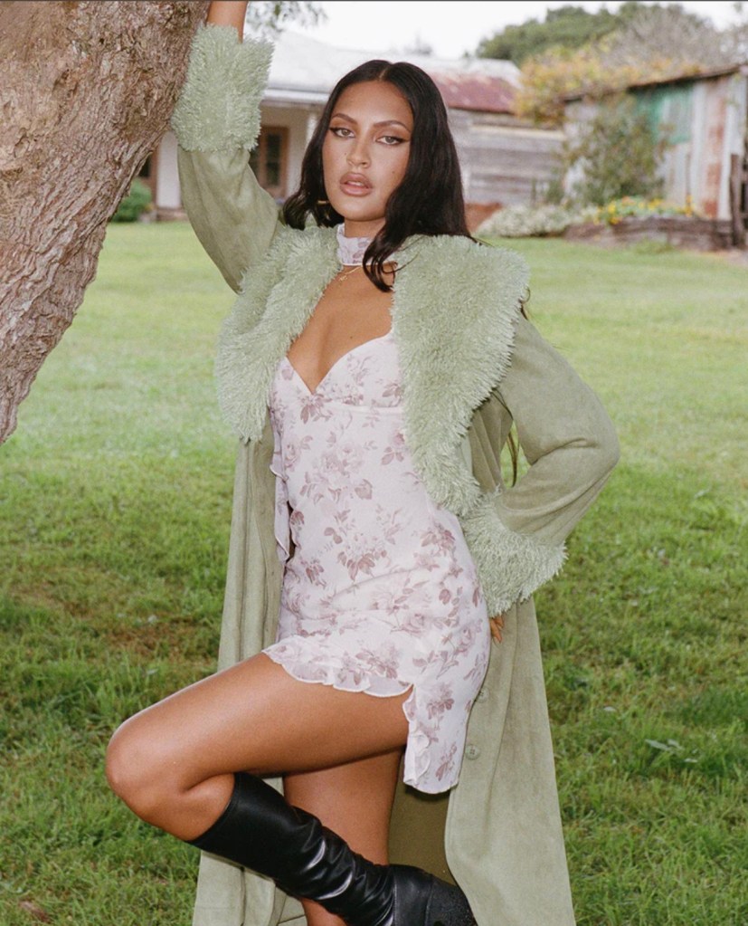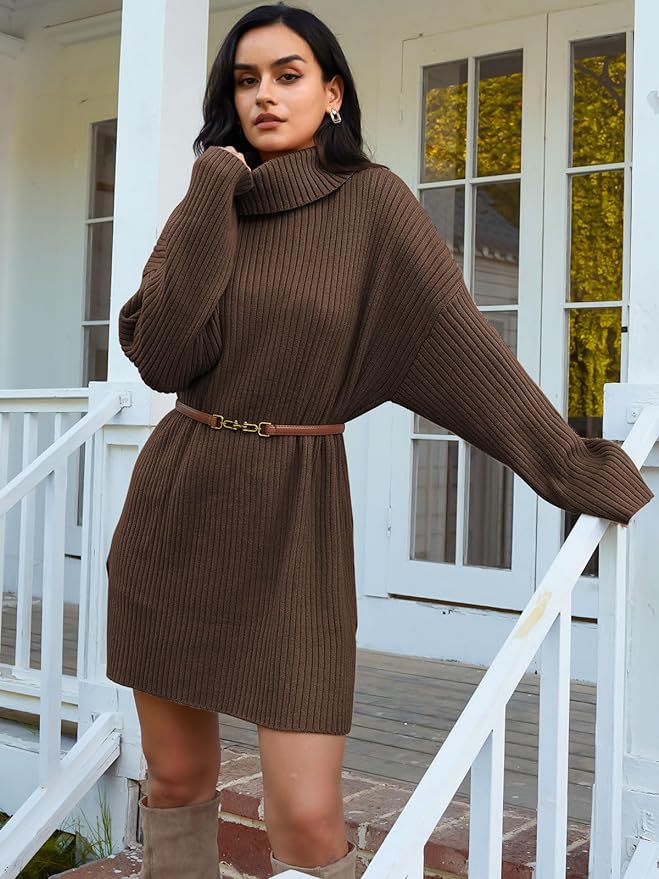 Another knitted dress! I love how the model is styled in this sweater dress, its very easy to change the aesthetic of your outfit and cater the dress to your body type all with a few accessories.