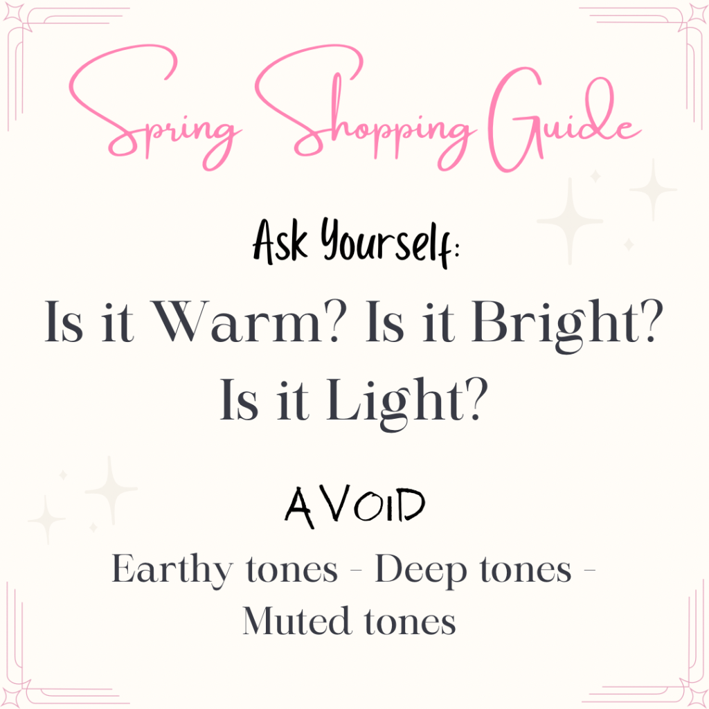 The first thing you need to know is that it can be a bit difficult to find our colors out in the wild, the best time to buy clothes in our season will be in the spring time. But before you start shopping I highly recommend cleaning out your closet of all the clothes you’ve clung onto for years and haven’t had a reason to get rid of. Now you have a reason, get rid of it!