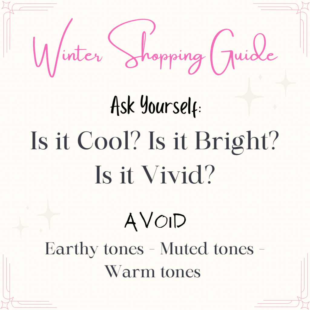 I’d like to say that shopping will be easy for you, especially since black is in your palette but Im sure there is some difficulty in finding your bold colors. You’re going to have to be particular about the stores you go into, beach brands will definitely not be your friend but a few stores I highly recommend for Winters are Express, Zara, Loft, Princess Polly, Target, Amazon!